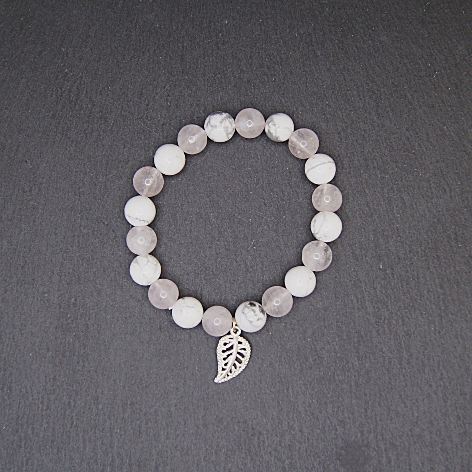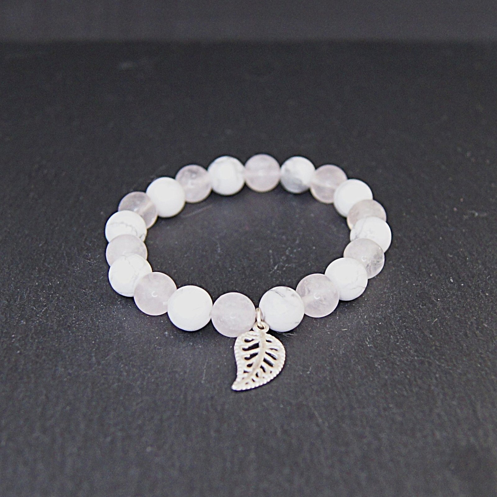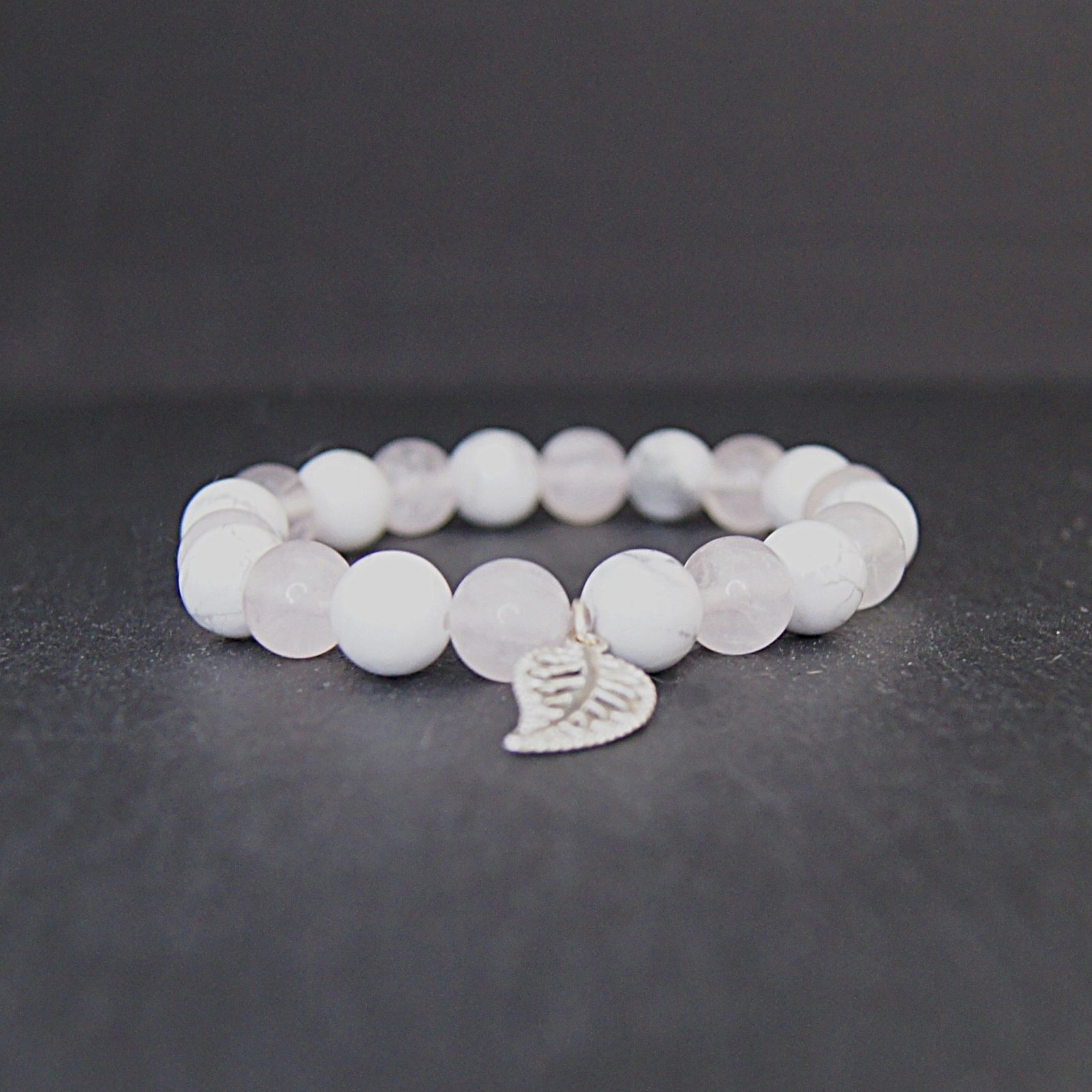 Plongez dans l’élégance délicate du bracelet « Calme et Feuille », un accessoire unique conçu pour apporter style et paix intérieure à votre vie quotidienne. Doté de perles de 10mm de howlite et de quartz rose méticuleusement conçus ensemble, ce bracelet émane de la tranquillité tout en dégageant une beauté intemporelle. L’ajout minutieux d’un charme de feuille argenté complète son design et ajoute une touche sophistiquée.