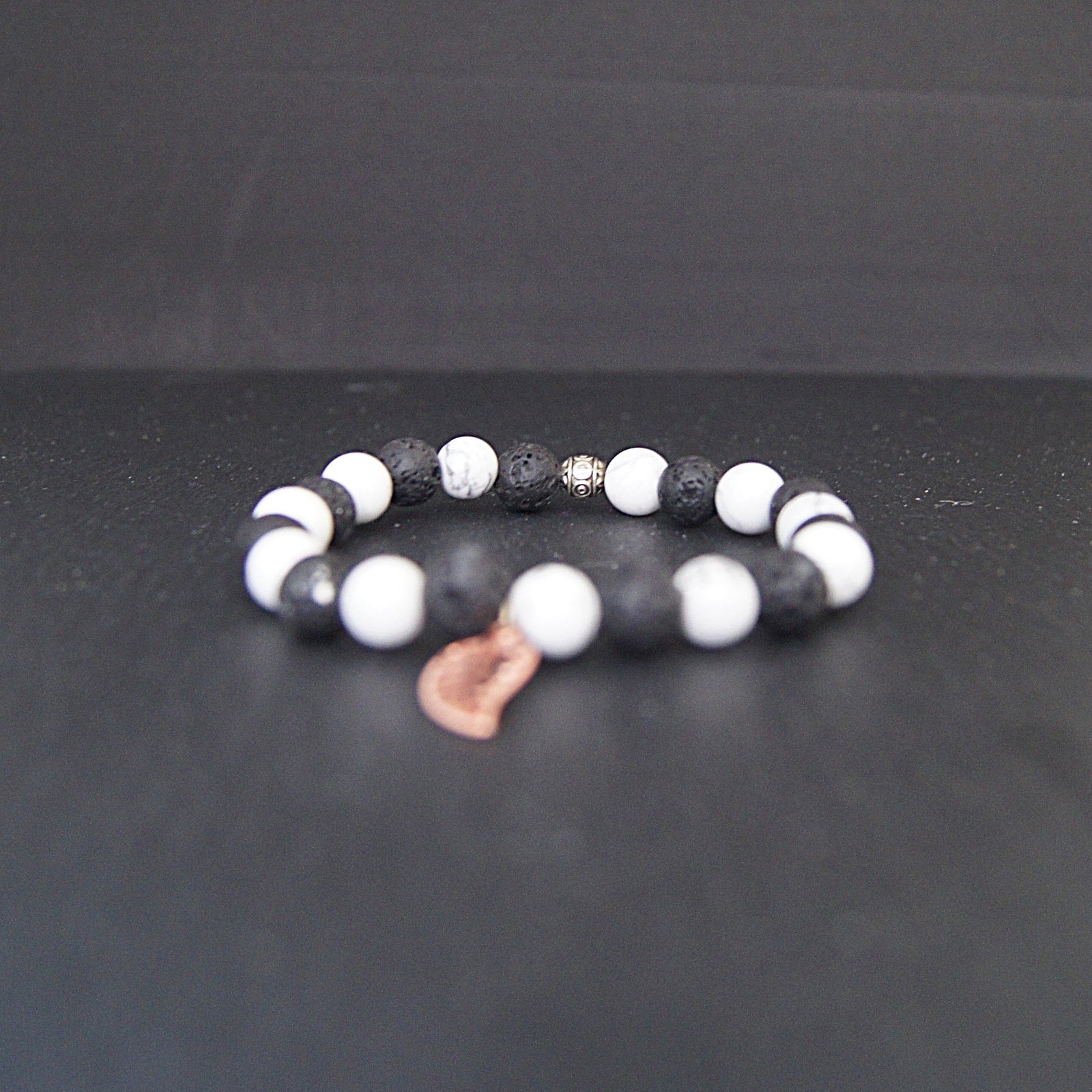 Chaque détail de ce produit a été minutieusement conçu pour vous offrir une beauté et une qualité inégalées. Léger et confortable, il complète votre style personnel sans compromettre la durabilité. Qu’il soit associé à une tenue décontractée ou à un vêtement formel, son design polyvalent garantit qu’il est l’ajout parfait à n’importe quelle tenue. L’influence apaisante de la Howlite, combinée à la nature de la pierre de lave, en fait plus qu’un joli accessoire – cela devient une partie significative de votre vie quotidienne.