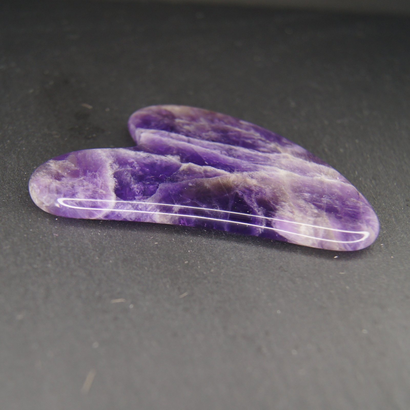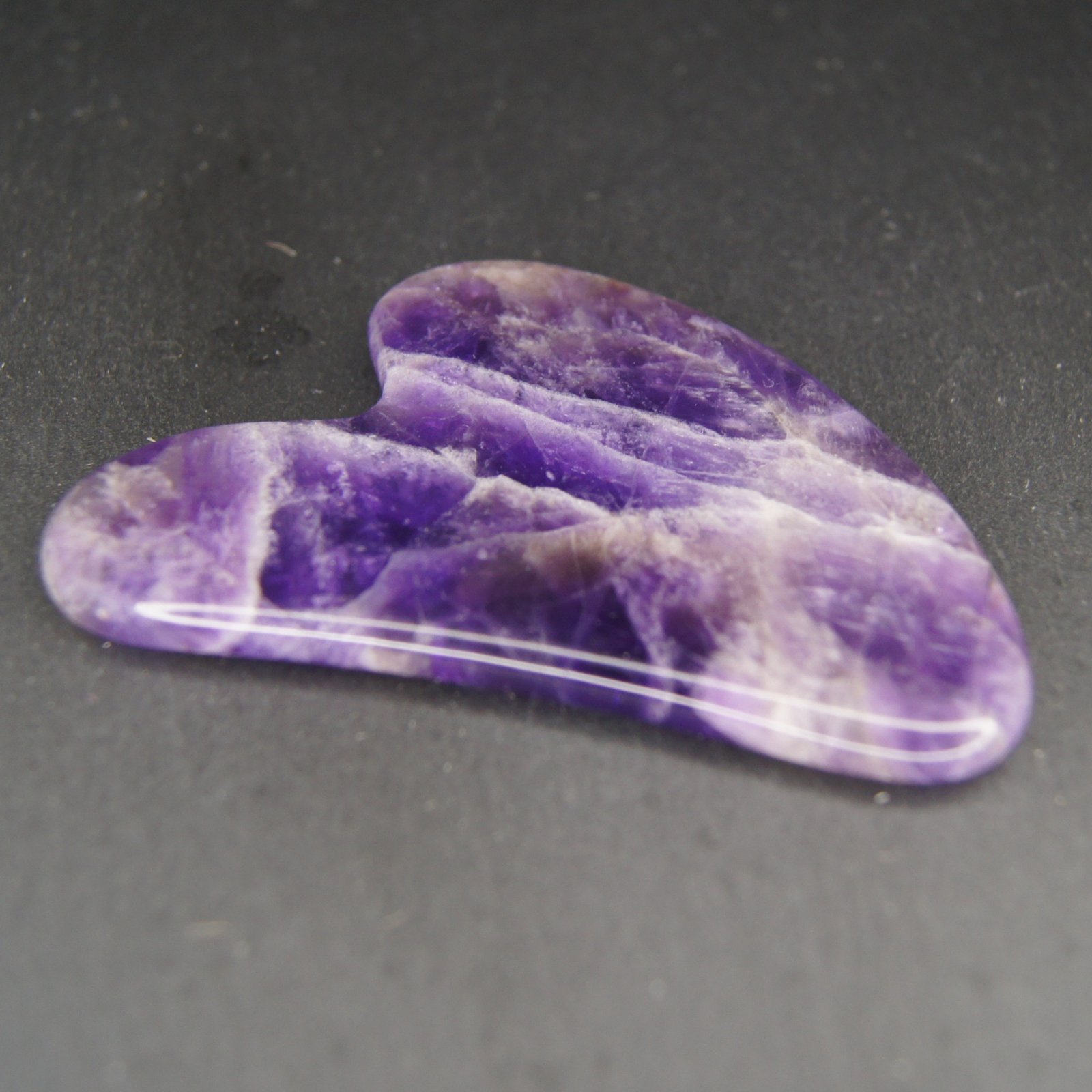 Gua Sha en Améthyste en forme de cœur pour épouser les lignes de votre visage pour une détente rapide.